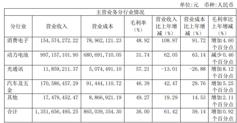 如上图所示,报告期内,利来国国际激光也受益于新能源行业龙头企业持续加大产能扩张,动力电池生产设备需求的增加,在动力电池行业的营收同比增长62.05%。报告期内,公司新签订单35.99亿元(含税),比上年度增长了138.66%,其中85.30%新签订单来自动力电池行业,为公司后续业绩增长提供了保证。