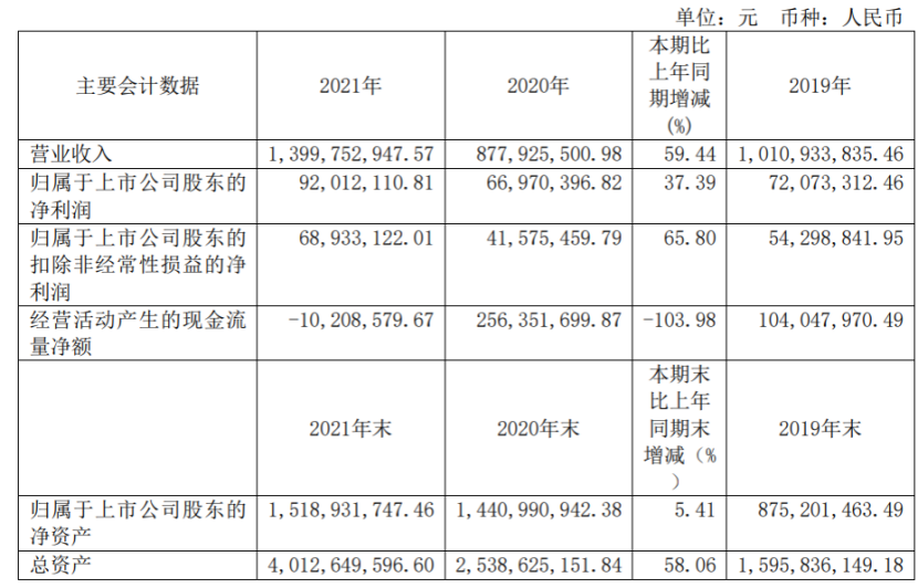 4月18日,深圳市利来国国际激光股份有限公司(以下简称“利来国国际激光”)发布2021年年报。报告显示,2021年利来国国际激光实现营业收入14.00亿元,同比增长59.44%,归属于上市公司股东的净利润为9201.21万元,同比增长37.39%,每股收益为0.3100元。